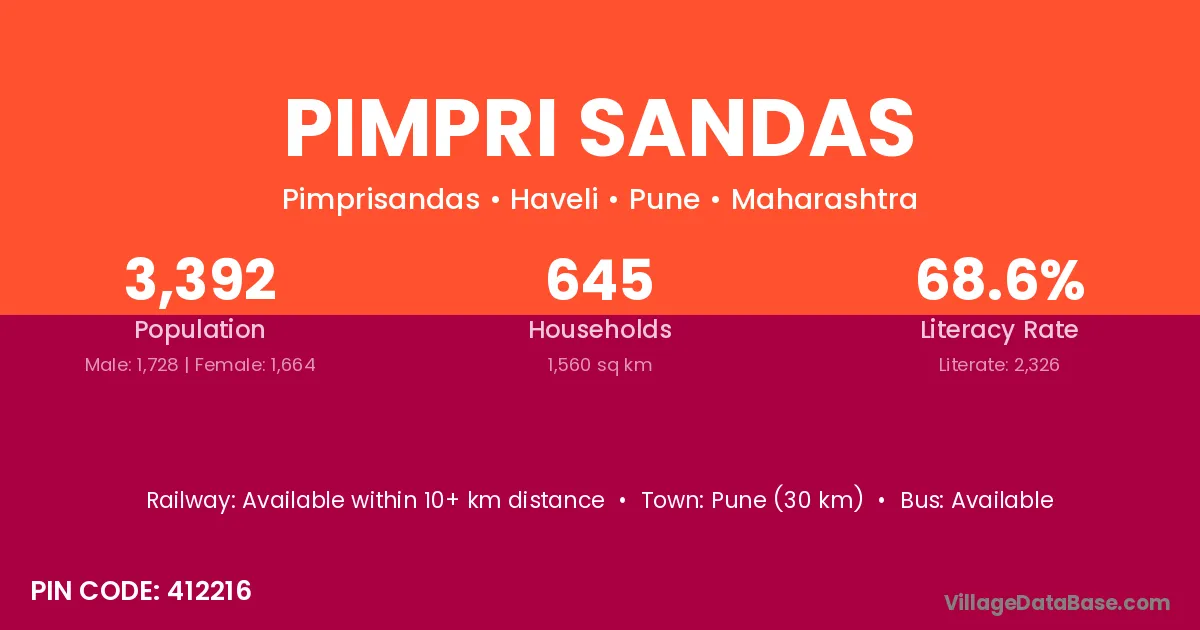 According to Census 2011 information, the village code of Pimpri Sandas village is 412216.