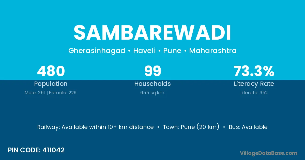 Sambarewadi village has a total population of 480 people, of which 251 are males and 229 are females.