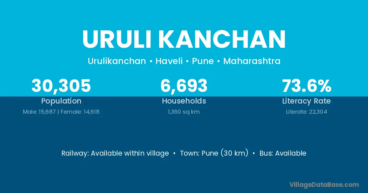 Uruli Kanchan village has a total population of 30,305 people, of which 15,687 are males and 14,618 are females.
