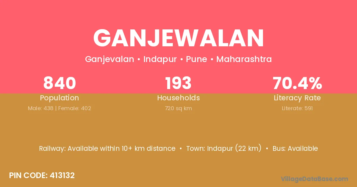 Indapur (22 km) is the nearest town to Ganjewalan village for major economic activities and is located approximately 22 km away.