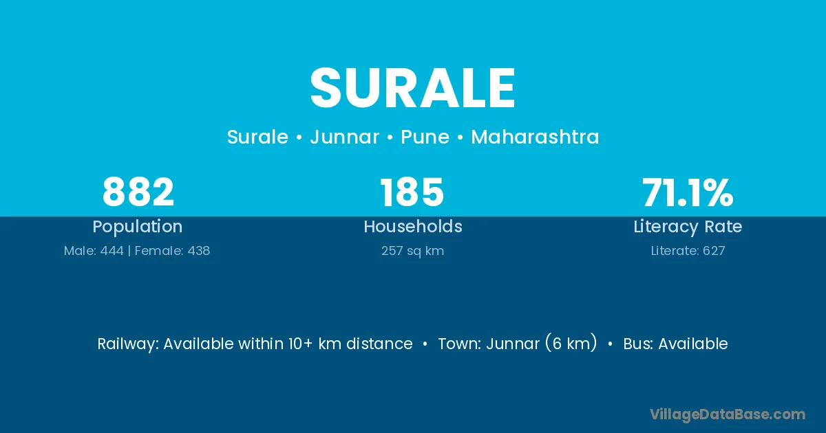 Junnar (6 km) is the nearest town to Surale village for major economic activities and is located approximately 6 km away.