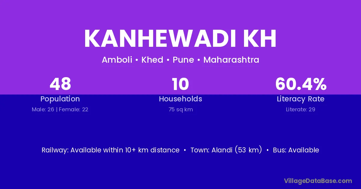 Kanhewadi Kh village has a total population of 48 people, of which 26 are males and 22 are females.