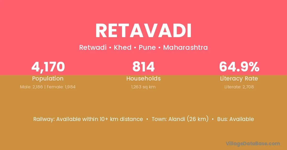 Alandi (26 km) is the nearest town to Retavadi village for major economic activities and is located approximately 26 km away.