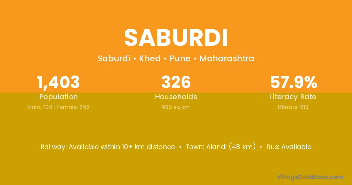 Alandi (48 km) is the nearest town to Saburdi village for major economic activities and is located approximately 48 km away.