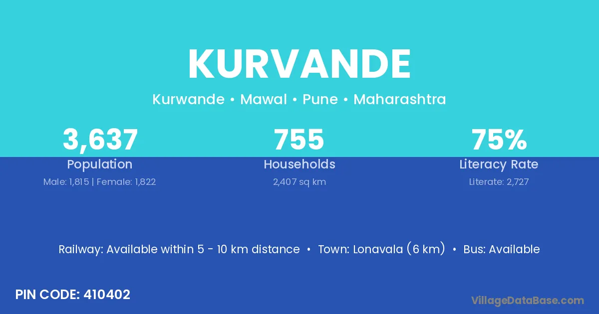Lonavala (6 km) is the nearest town to Kurvande village for major economic activities and is located approximately 6 km away.