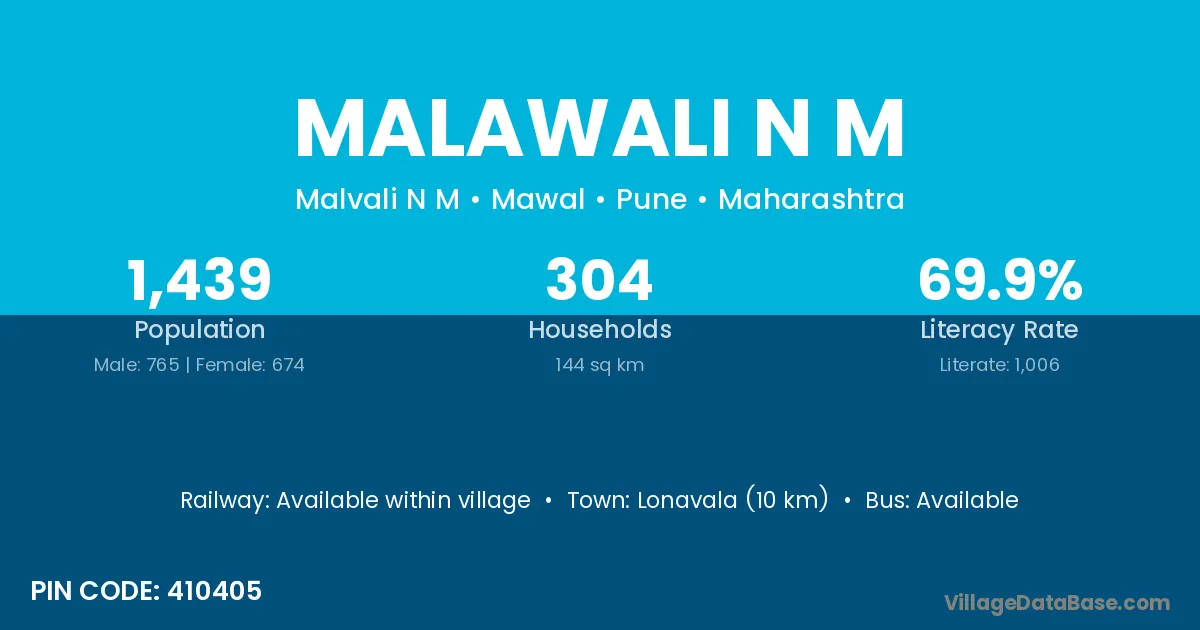 Lonavala (10 km) is the nearest town to Malawali N M village for major economic activities and is located approximately 10 km away.