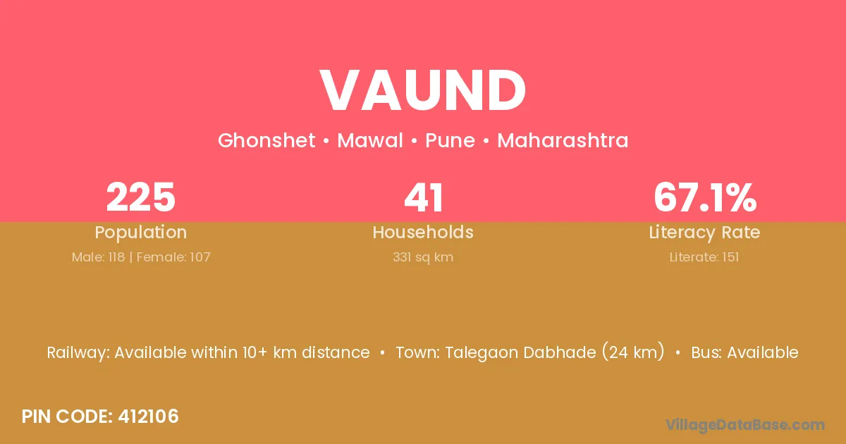Talegaon Dabhade (24 km) is the nearest town to Vaund village for major economic activities and is located approximately 24 km away.