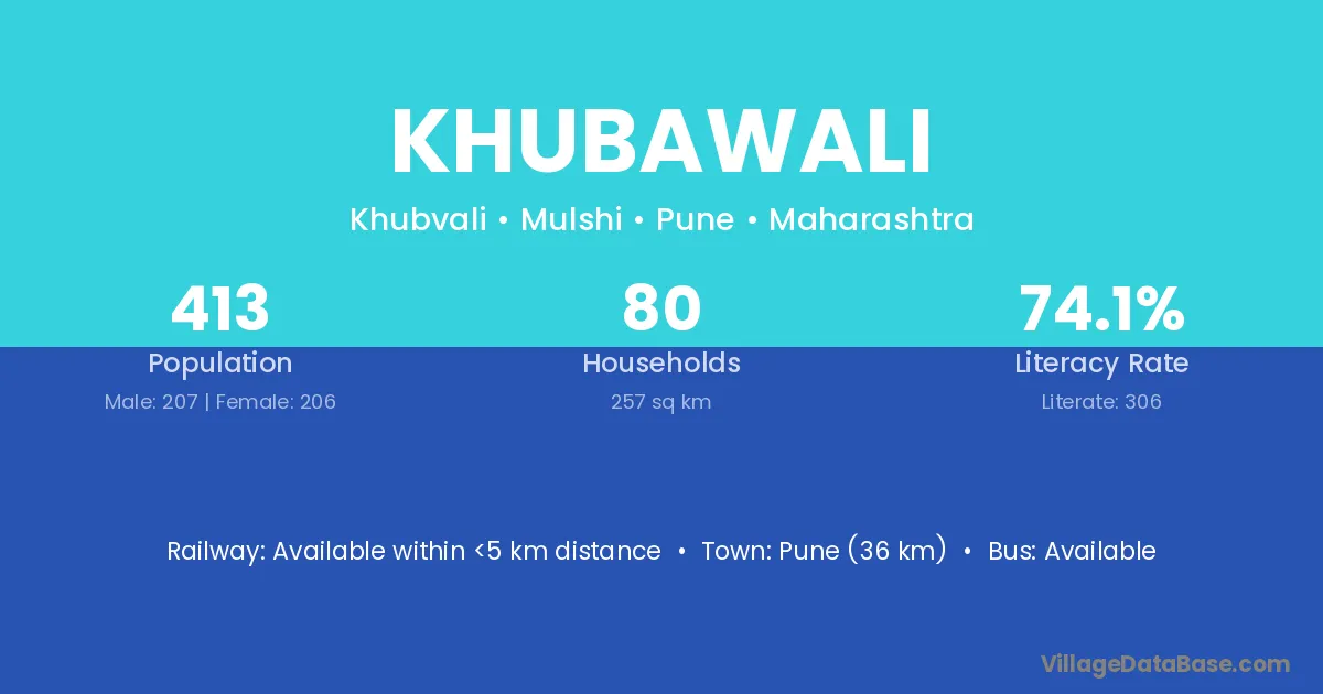 Khubawali village has a total population of 413 people, of which 207 are males and 206 are females.