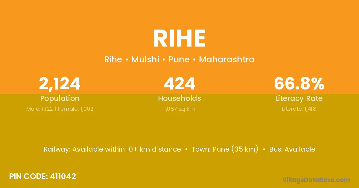 Pune (35 km) is the nearest town to Rihe village for major economic activities and is located approximately 35 km away.