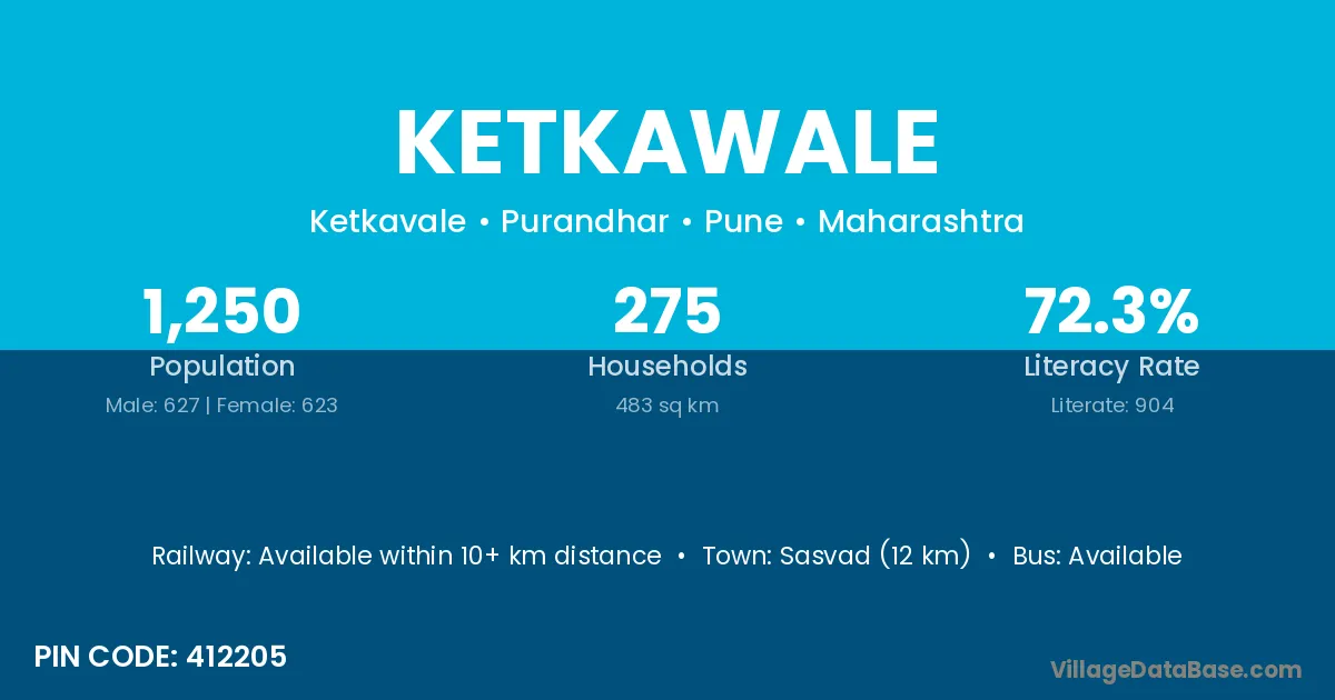 Sasvad (12 km) is the nearest town to Ketkawale village for major economic activities and is located approximately 12 km away.