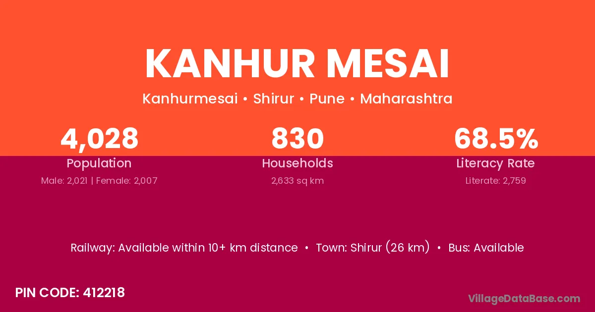Shirur (26 km) is the nearest town to Kanhur Mesai village for major economic activities and is located approximately 26 km away.
