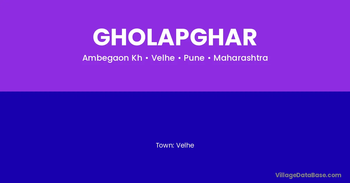 Velhe is the nearest town to Gholapghar village for major economic activities