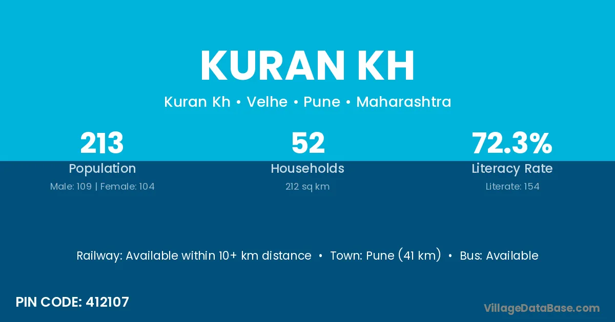 Pune (41 km) is the nearest town to Kuran Kh village for major economic activities and is located approximately 41 km away.
