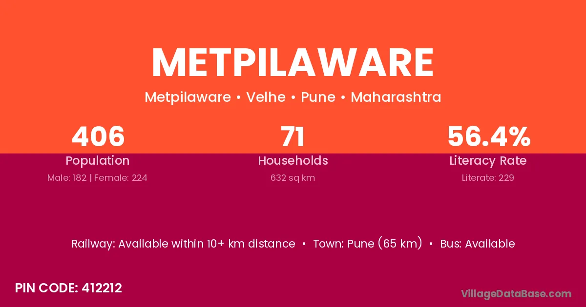 Pune (65 km) is the nearest town to Metpilaware village for major economic activities and is located approximately 65 km away.