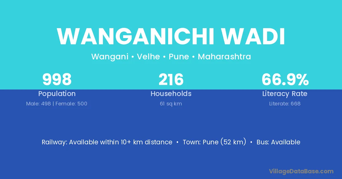 Wanganichi Wadi village has a total population of 998 people, of which 498 are males and 500 are females.