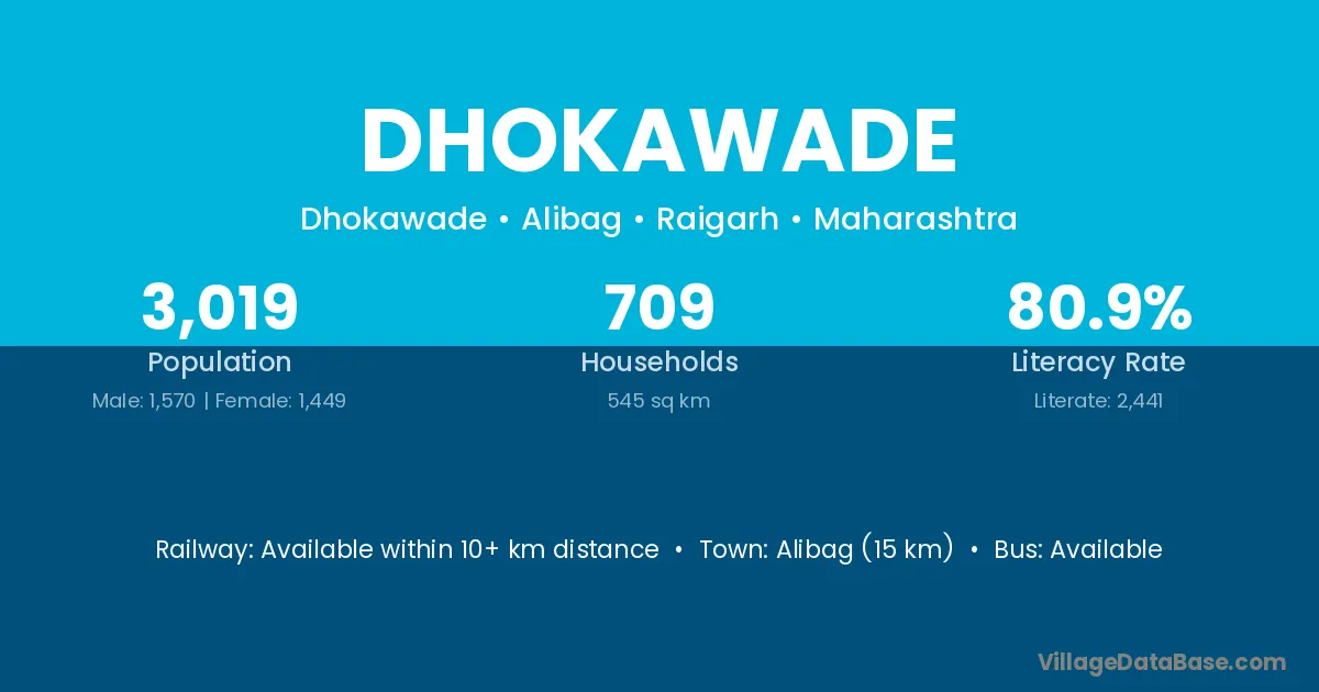 Alibag (15 km) is the nearest town to Dhokawade village for major economic activities and is located approximately 15 km away.