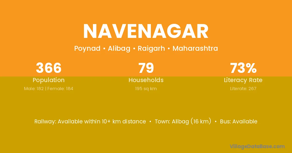 Navenagar village has a total population of 366 people, of which 182 are males and 184 are females.