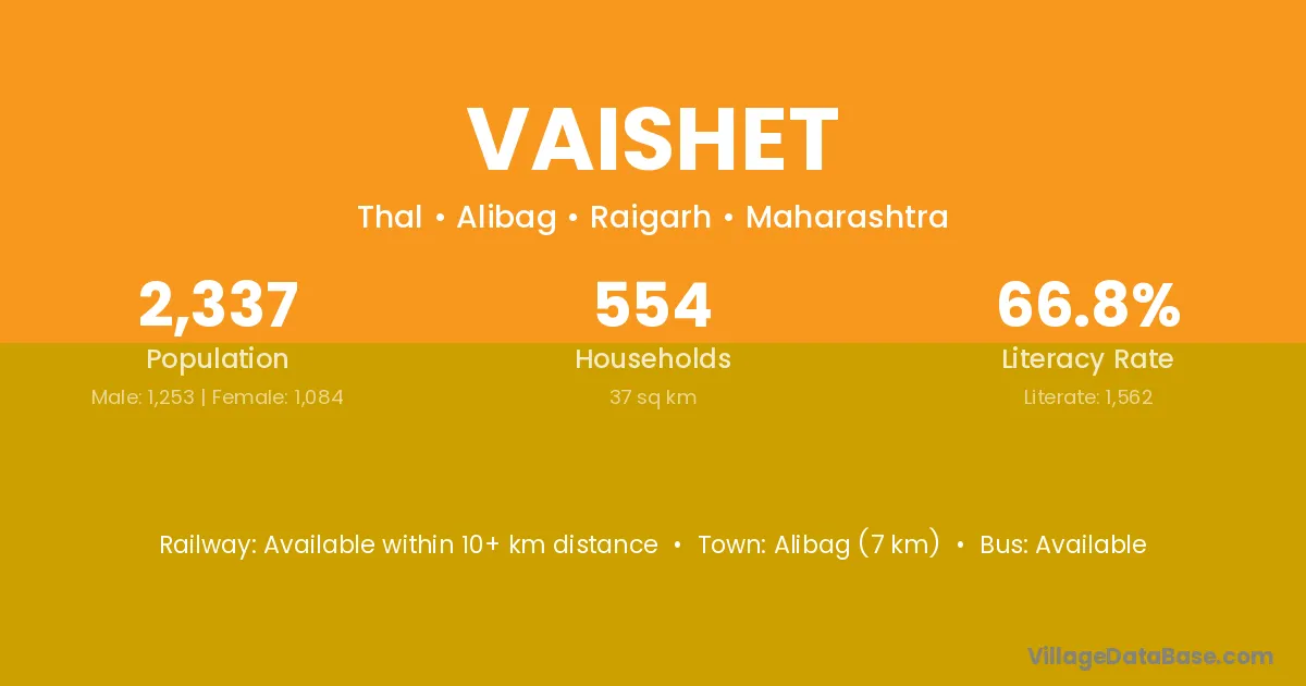 Alibag (7 km) is the nearest town to Vaishet village for major economic activities and is located approximately 7 km away.