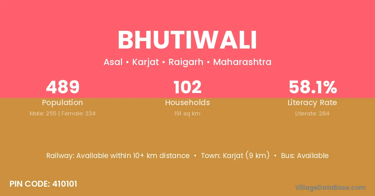 Karjat (9 km) is the nearest town to Bhutiwali village for major economic activities and is located approximately 9 km away.