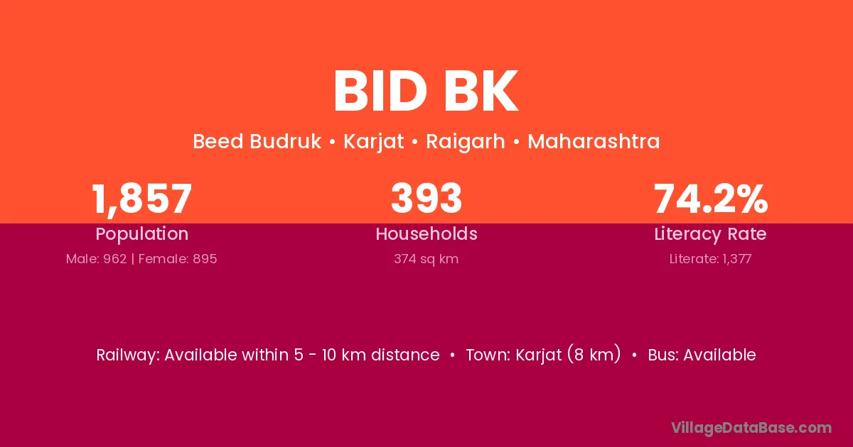 Karjat (8 km) is the nearest town to Bid Bk village for major economic activities and is located approximately 8 km away.
