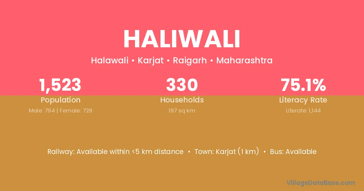 Karjat (1 km) is the nearest town to Haliwali village for major economic activities and is located approximately 1 km away.