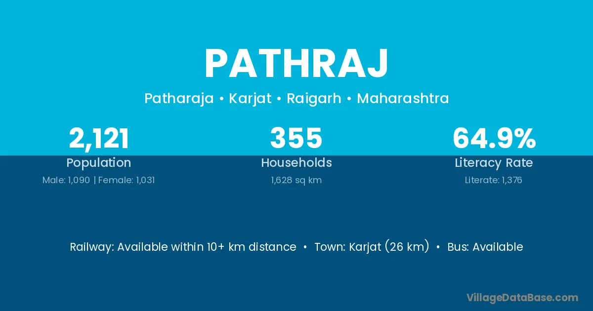 Karjat (26 km) is the nearest town to Pathraj village for major economic activities and is located approximately 26 km away.
