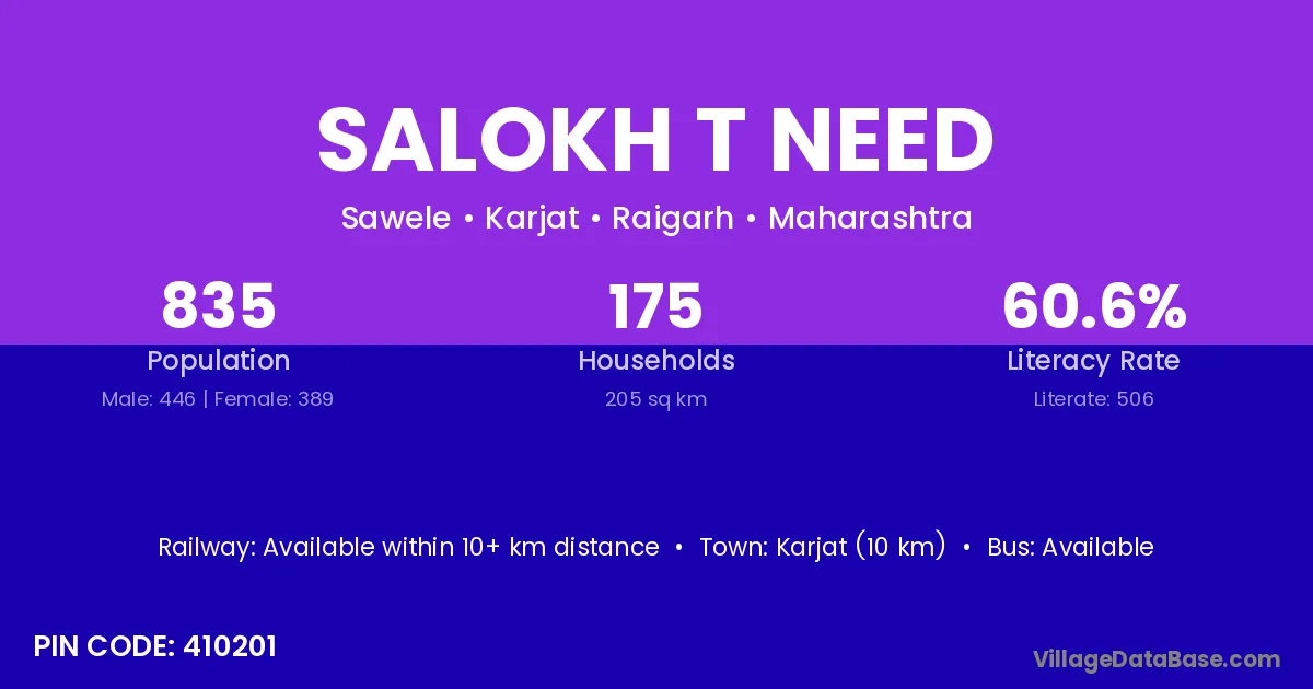 Karjat (10 km) is the nearest town to Salokh T Need village for major economic activities and is located approximately 10 km away.