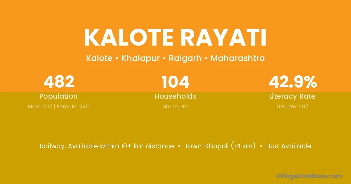 Khopoli (14 km) is the nearest town to Kalote Rayati village for major economic activities and is located approximately 14 km away.