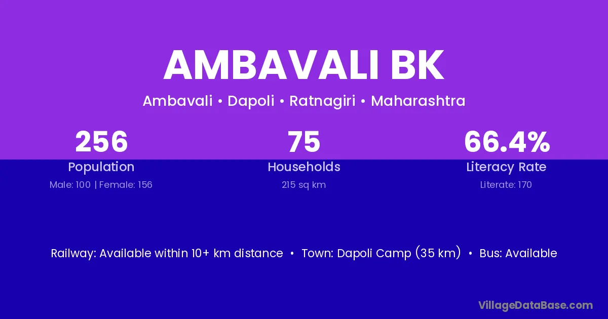 Ambavali Bk village has a total population of 475 people, of which 228 are males and 247 are females.