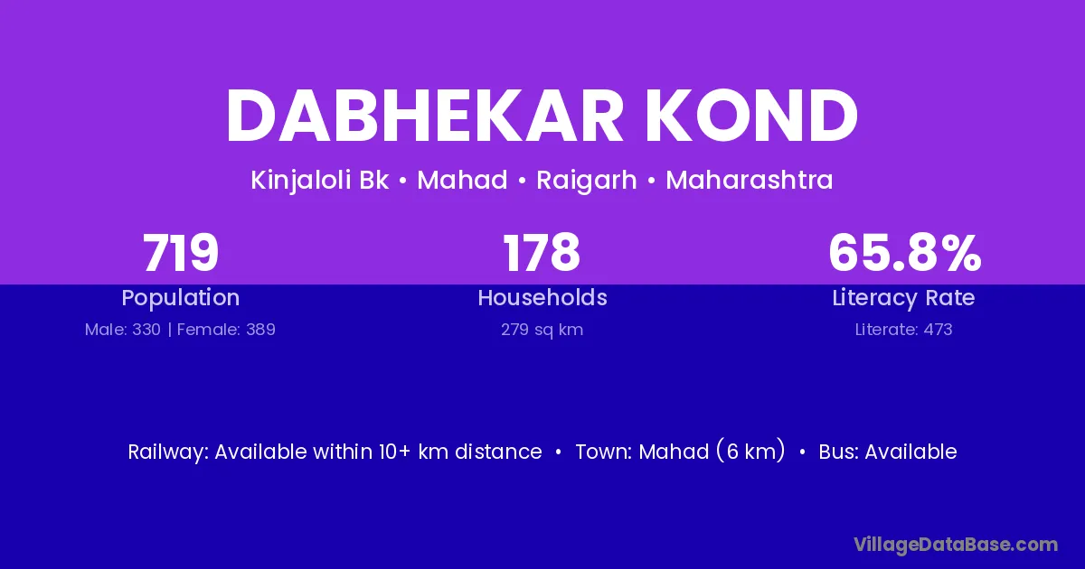 Mahad (6 km) is the nearest town to Dabhekar Kond village for major economic activities and is located approximately 6 km away.