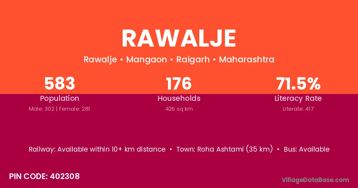 Roha Ashtami (35 km) is the nearest town to Rawalje village for major economic activities and is located approximately 35 km away.