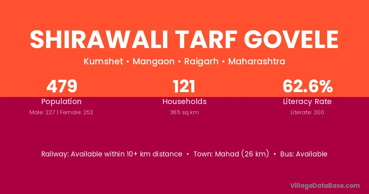 Shirawali Tarf Govele village has a total population of 479 people, of which 227 are males and 252 are females.