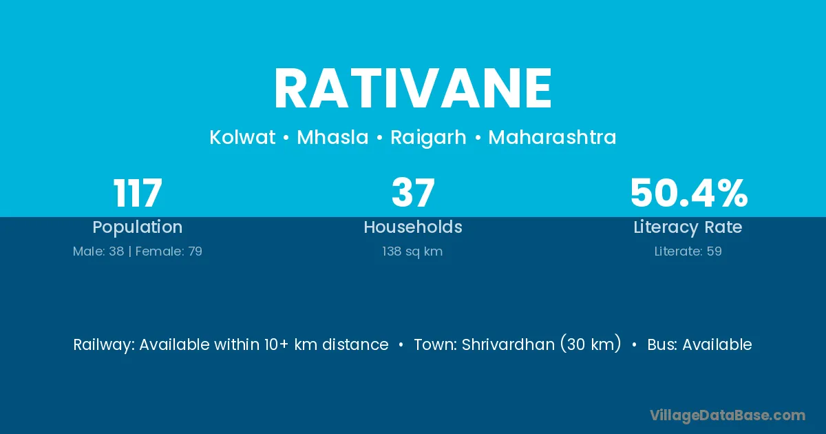 Shrivardhan (30 km) is the nearest town to Rativane village for major economic activities and is located approximately 30 km away.