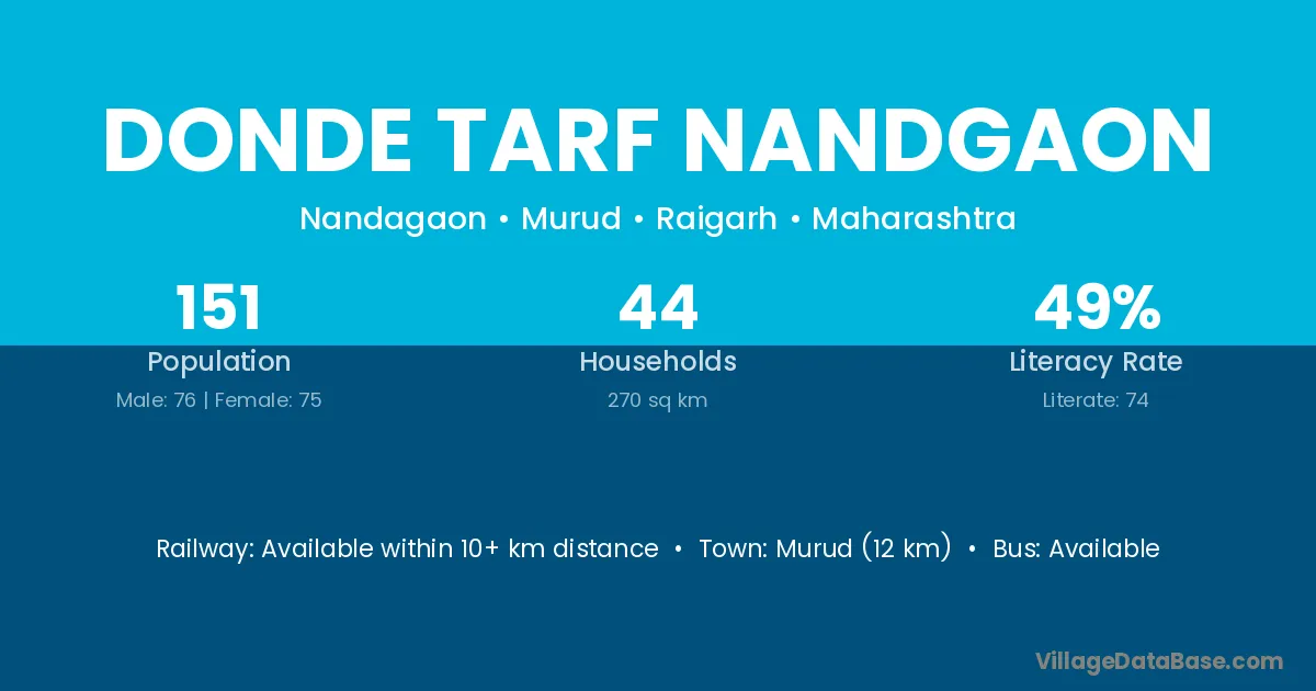 Donde Tarf Nandgaon village has a total population of 151 people, of which 76 are males and 75 are females.
