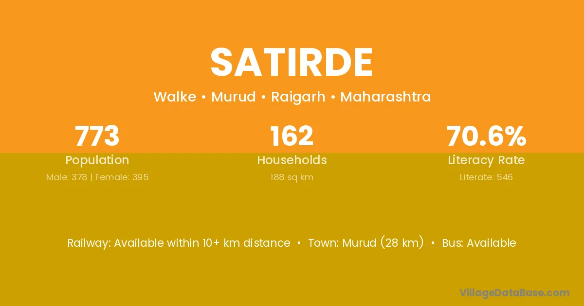 Murud (28 km) is the nearest town to Satirde village for major economic activities and is located approximately 28 km away.