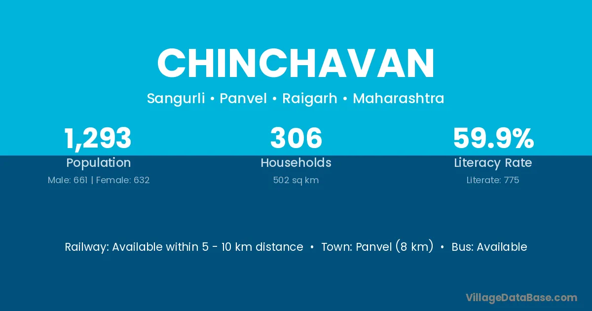 Panvel (8 km) is the nearest town to Chinchavan village for major economic activities and is located approximately 8 km away.