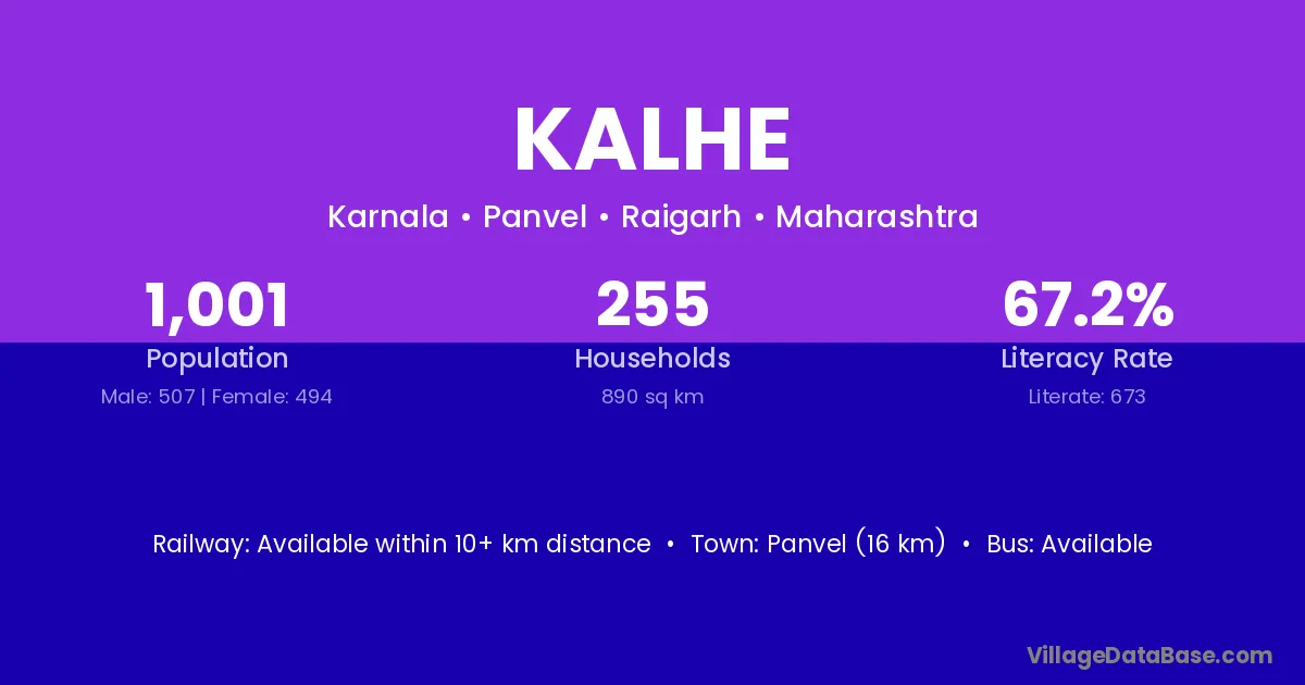 Panvel (16 km) is the nearest town to Kalhe village for major economic activities and is located approximately 16 km away.