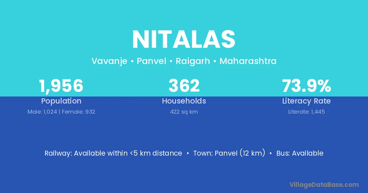 Panvel (12 km) is the nearest town to Nitalas village for major economic activities and is located approximately 12 km away.