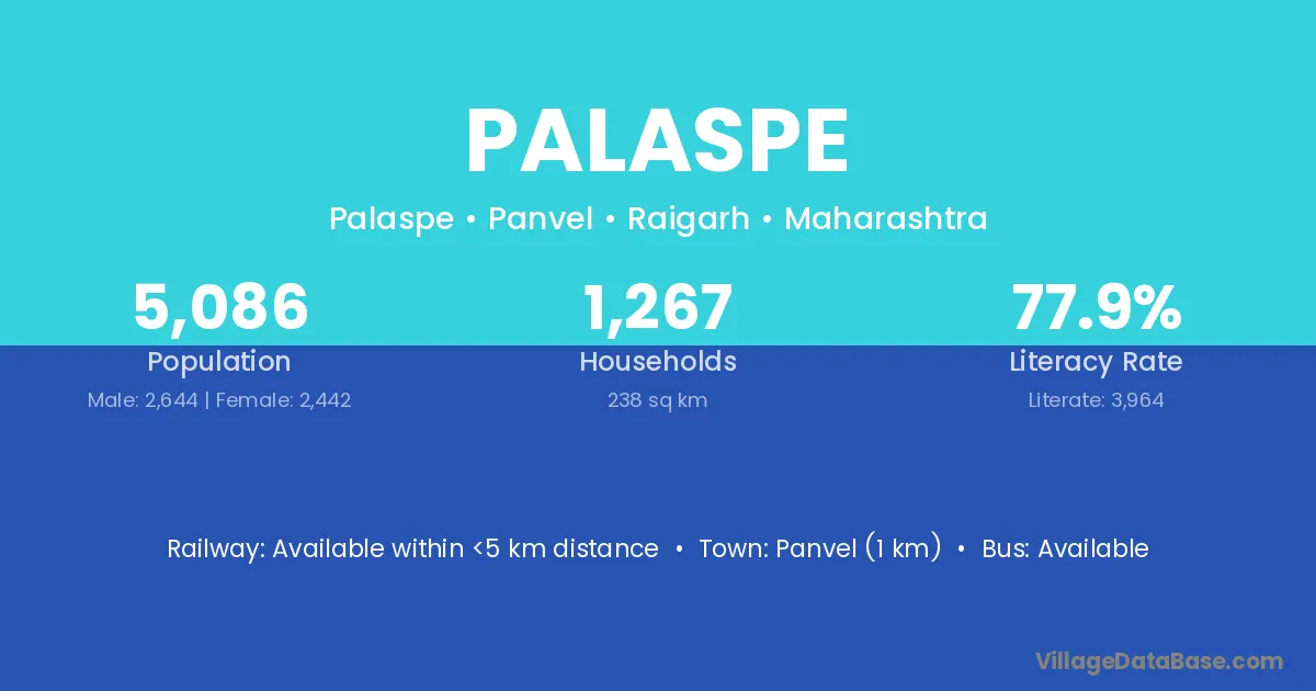 Panvel (1 km) is the nearest town to Palaspe village for major economic activities and is located approximately 1 km away.