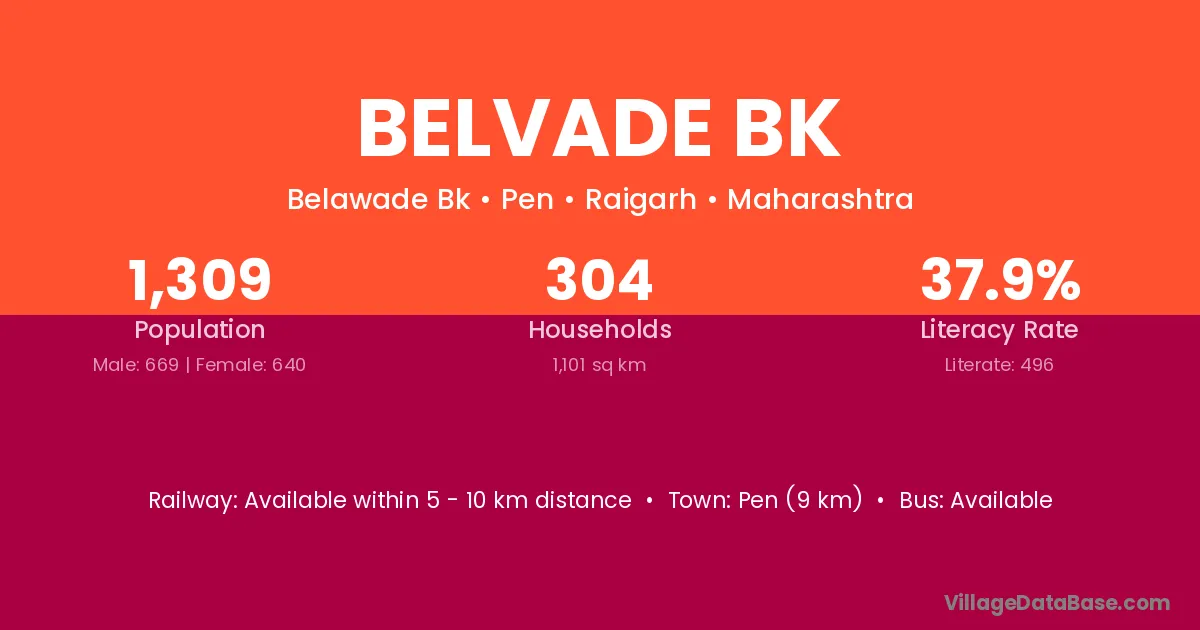 Pen (9 km) is the nearest town to Belvade Bk village for major economic activities and is located approximately 9 km away.