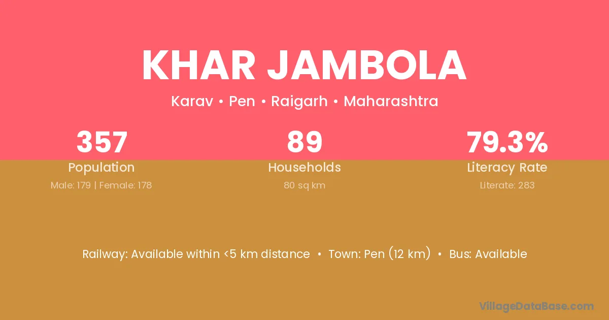 Pen (12 km) is the nearest town to Khar Jambola village for major economic activities and is located approximately 12 km away.