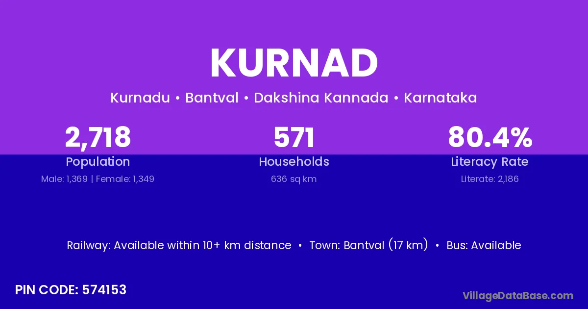 The literacy rate of Kurnad village is 43.84%. Male literacy stands at 53.13% and female literacy at 33.94%.
