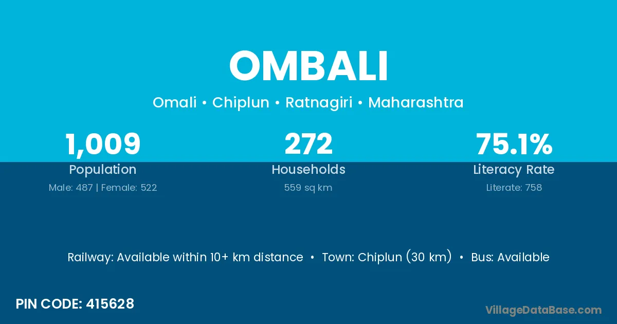 Mahad (47 km) is the nearest town to Ombali village for major economic activities and is located approximately 47 km away.