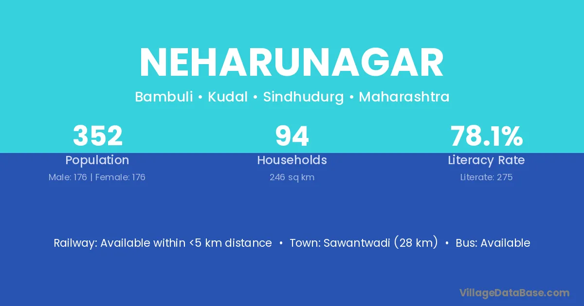 Roha Ashtami (10 km) is the nearest town to Neharunagar village for major economic activities and is located approximately 10 km away.