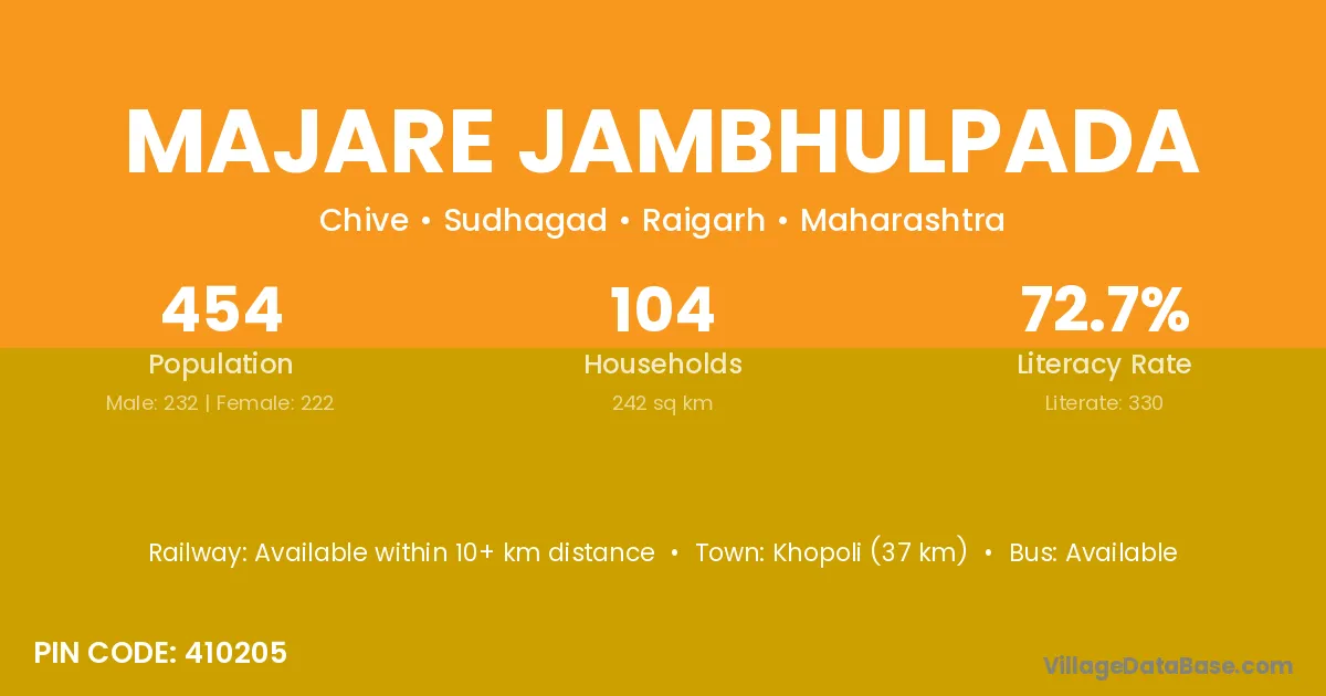 Majare Jambhulpada village has a total population of 454 people, of which 232 are males and 222 are females.