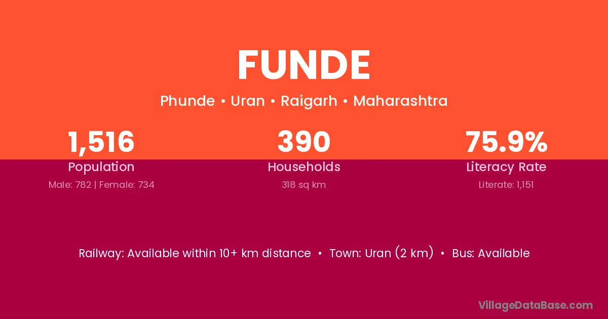Uran (2 km) is the nearest town to Funde village for major economic activities and is located approximately 2 km away.