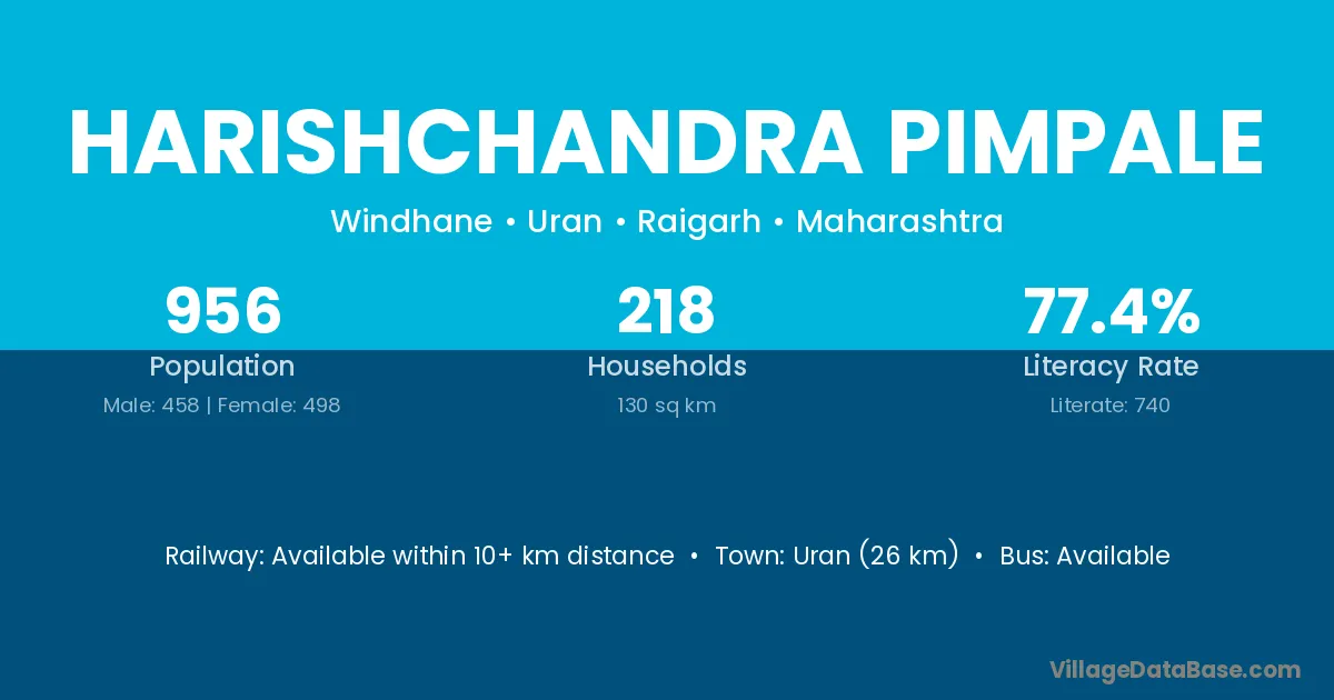 Uran (26 km) is the nearest town to Harishchandra Pimpale village for major economic activities and is located approximately 26 km away.