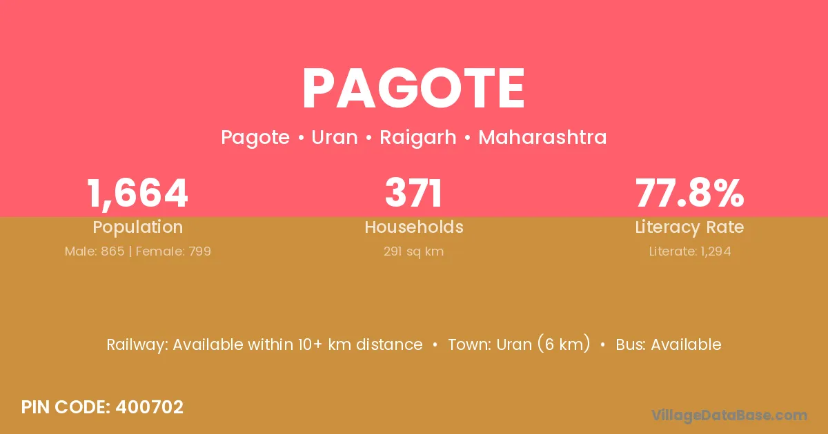 Uran (6 km) is the nearest town to Pagote village for major economic activities and is located approximately 6 km away.