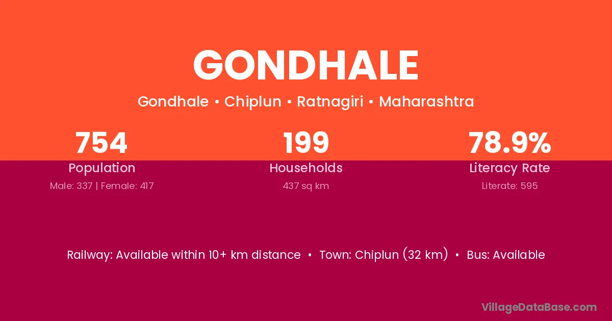 Chiplun (32 km) is the nearest town to Gondhale village for major economic activities and is located approximately 32 km away.