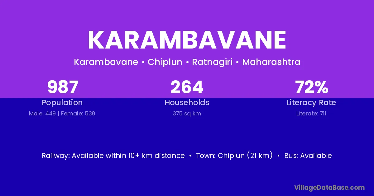 Chiplun (21 km) is the nearest town to Karambavane village for major economic activities and is located approximately 21 km away.